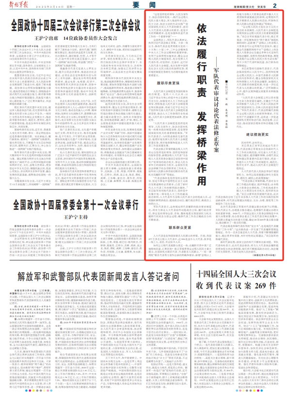 (解放军报北京3月9日电)