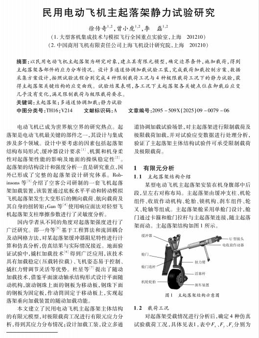 民用电动飞机主起落架静力试验研究