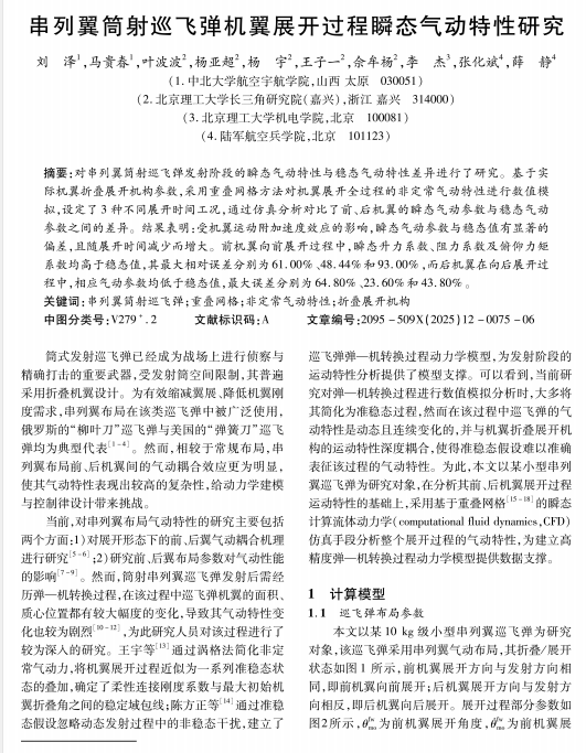 串列翼筒射巡飞弹机翼展开过程瞬态气动特性研究