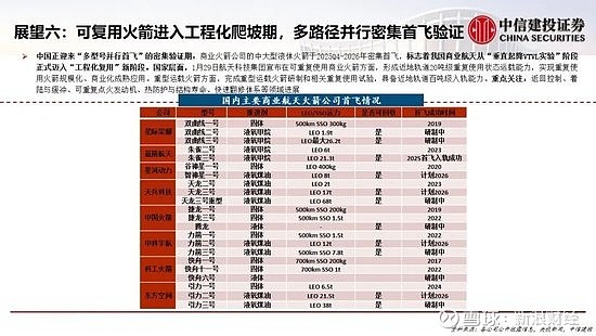 6.可复用火箭进入工程化爬坡期:竞争核心从“能否回收”转为“能否高频次复用”。国内多型中大型液体火箭在2025-2026年密集首飞,旨在攻克可复用技术以应对星座建设产生的巨大运力与成本压力。