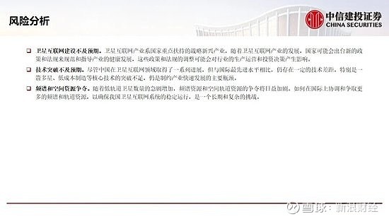 技术突破不及预期。尽管中国在卫星互联网领域取得了一系列进展,但与国际最先进水平相比,仍存在一定的技术差距。特别是一箭多星、低成本制造等核心技术的突破不足,仍是制约产业快速发展的主要瓶颈。