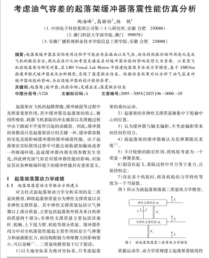 考虑油气容差的起落架缓冲器落震性能仿真分析