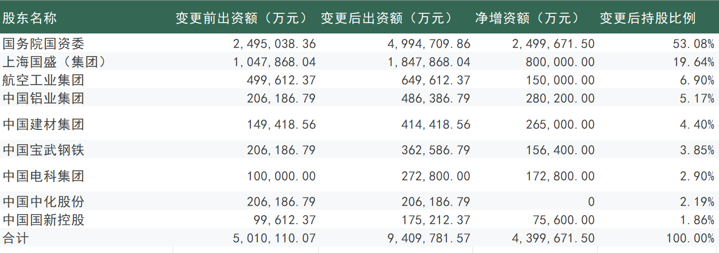 目前,中国商飞股东包括国务院国资委以及8家国央企。此次增资除中化股份1家未对中国商飞进行增资外,其余8家股东均对商飞进行了不同程度的增资。